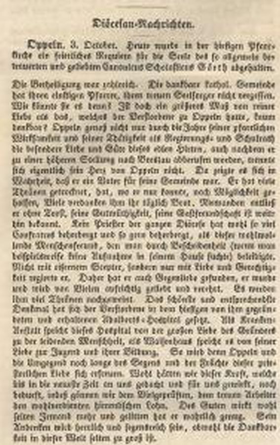 1843 wurde CAG „von der preußischen Regierung“ zum „Kanonikus Scholasticus“ des Breslauer Domkapitels befördert und „allen anderen vorgesetzt“, was dort einigen Unmut verursachte, so dass die Bestätigung des Papstes nicht vor Ostern 1844 erfolgte und CAG Oppeln erst im Mai 1844 unter feierlichen Geleit seiner Gemeinde und der Lehrerschaft zum damals noch einzigen städtischen Bahnhof in Sczepanowitz (Szczepanowice) in Richtung Breslau endgültig verließ.